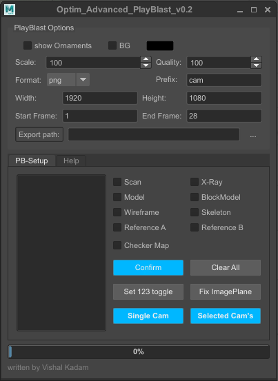 - This tool creates sequence playblasts for turntables and multiple still cameras.